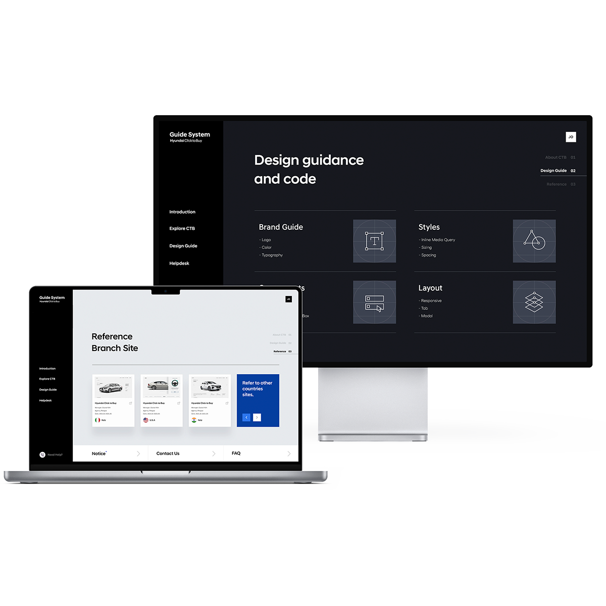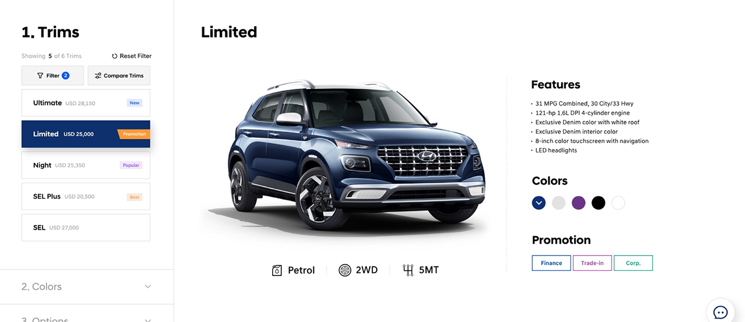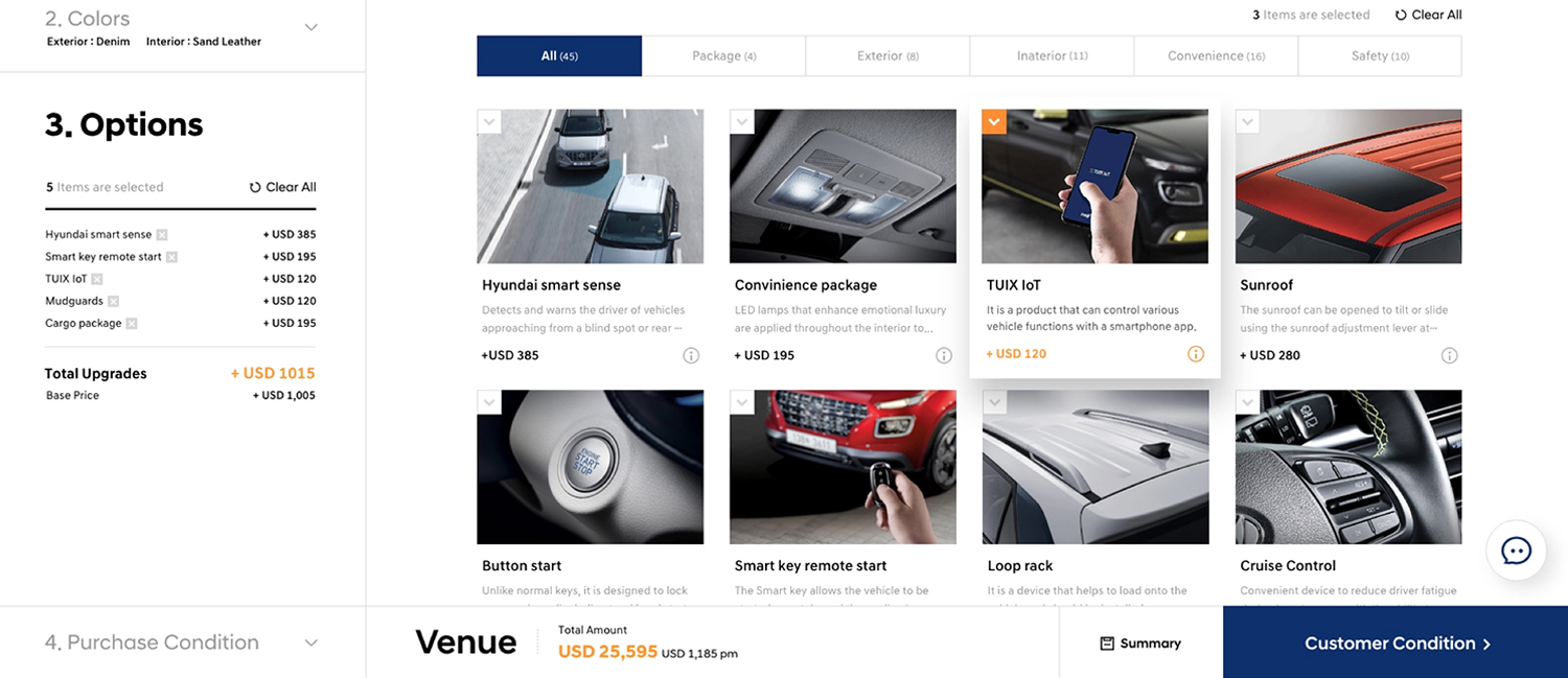 Reflecting the growing need for online sales worldwide, A guide platform construction project was undertaken to redefine the complex step-by-step scenarios of inconsistent country vehicle purchases. After analyzing the process of purchasing vehicles in each country, we designed a standardized method to provide a consistent user experience in various countries.